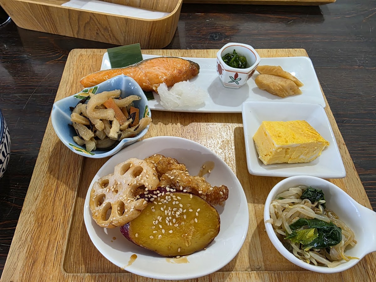 This café is best known for its thoughtfully prepared lunch sets, particularly the うさぎ御膳 offerings that arrive loaded with seasonal sides and generous portions. Diners appreciate a variety of well-balanced dishes, from tender roast beef and moist grilled salmon to crispy tempura and gentle simmered vegetables. The rice, often a chewy multi-grain blend, and careful seasoning signal an attention to traditional home-style flavors without feeling heavy or overly salty. Portions here are hearty enough to satisfy those looking for a proper meal rather than just a light snack.